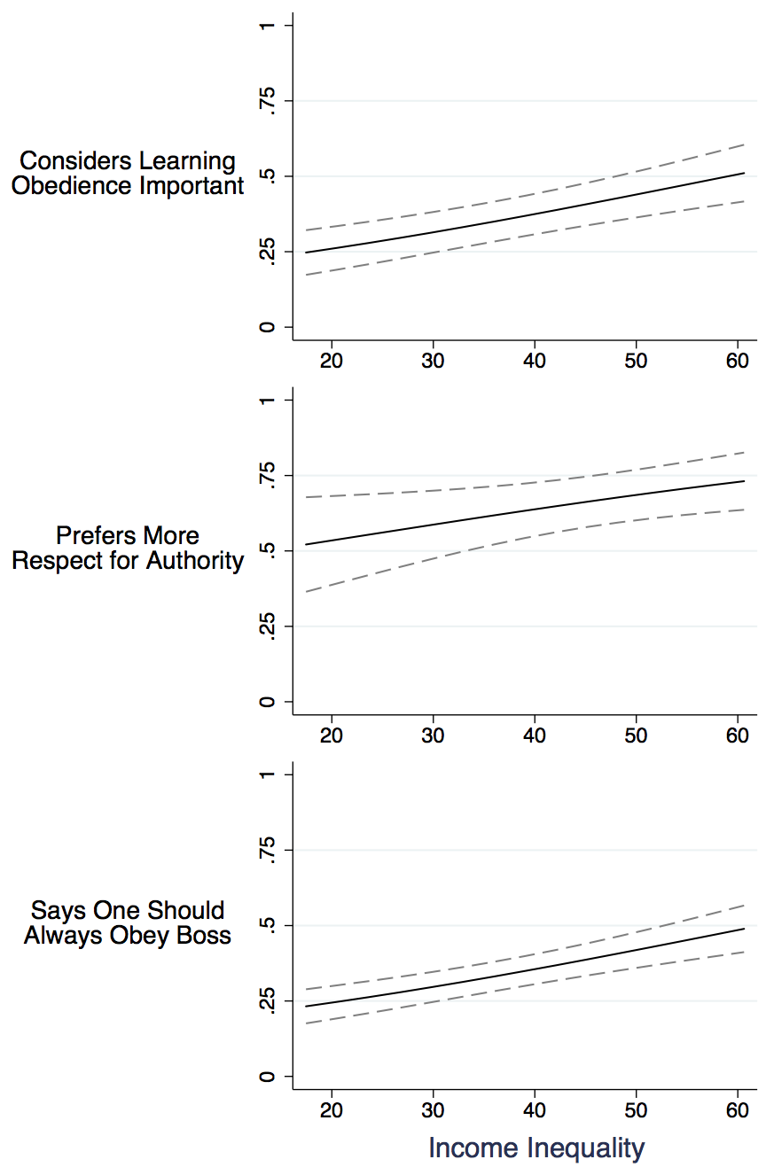 Despite much attention to the problematic consequences of authoritarianism, little research focuses on the causes of such unquestioning respect for ‘proper’ authority. Elaborating on the social learning approach to authoritarianism, this paper argues that economic inequality within countries shapes individuals’ feelings towards authority. As differences in condition among members of a society increase, so does the relative power of the wealthy. As a result, regardless of their incomes, individuals’ experiences are more likely to lead them to view hierarchical relations as natural and, in turn, to hold greater respect for authority. Multilevel models of authoritarianism in countries around the world over three decades support this relative power theory.