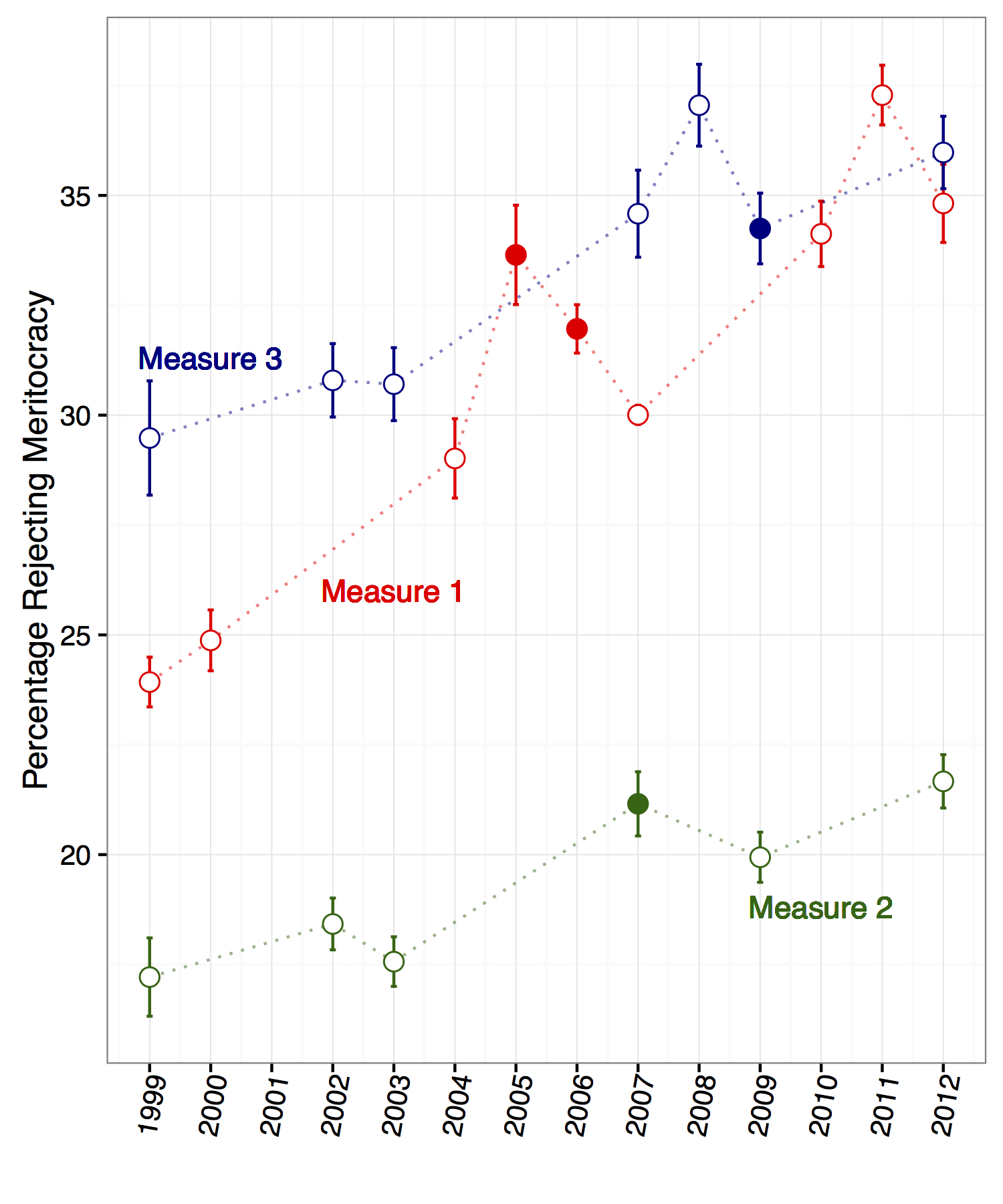 Solt, Frederick, Yue Hu, Kevan Hudson, Jungmin Song, and Dong ‘Erico’ Yu. 2016. “Economic Inequality and Belief in Meritocracy in the United States.” Research & Politics 3(4):1-7.
