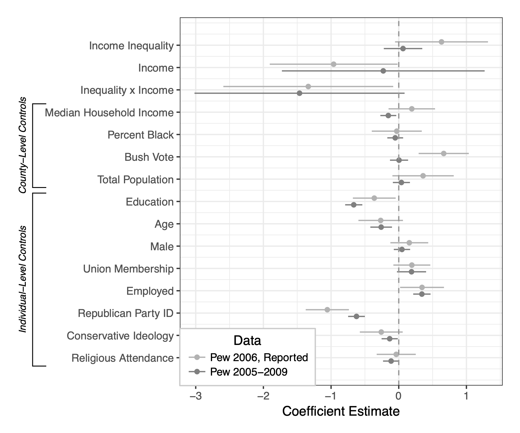 Solt, Frederick, Yue Hu, Kevan Hudson, Jungmin Song, and Dong ‘Erico’ Yu. 2017. “Economic Inequality and Class Consciousness.” Journal of Politics 79(3):1079-1083.